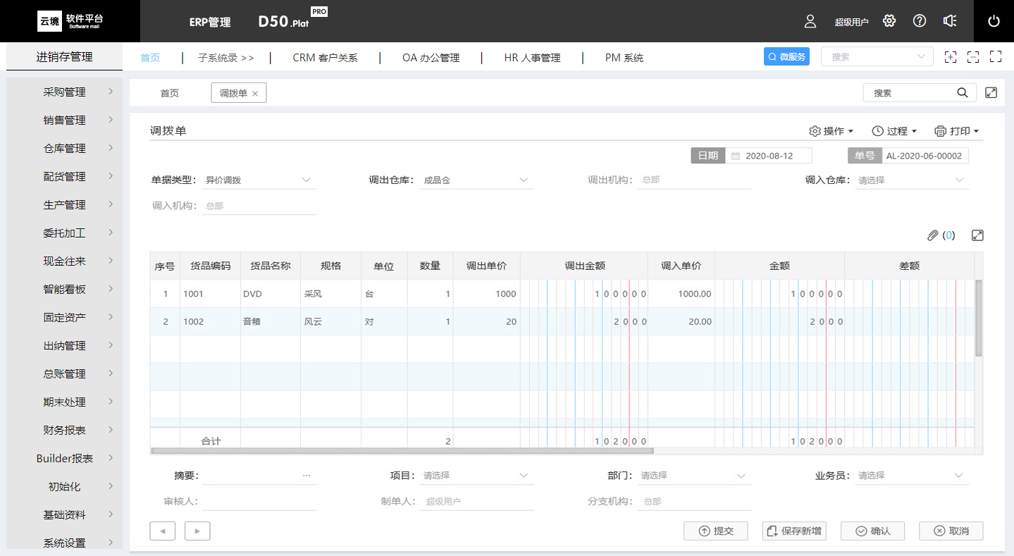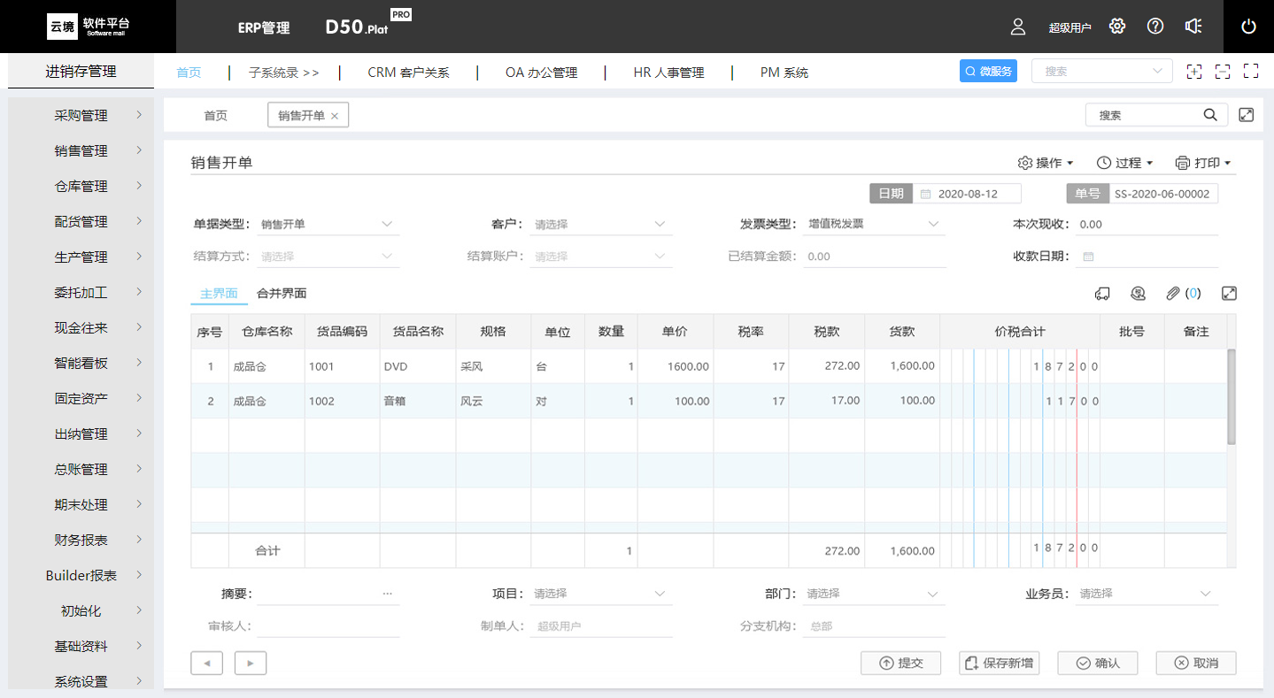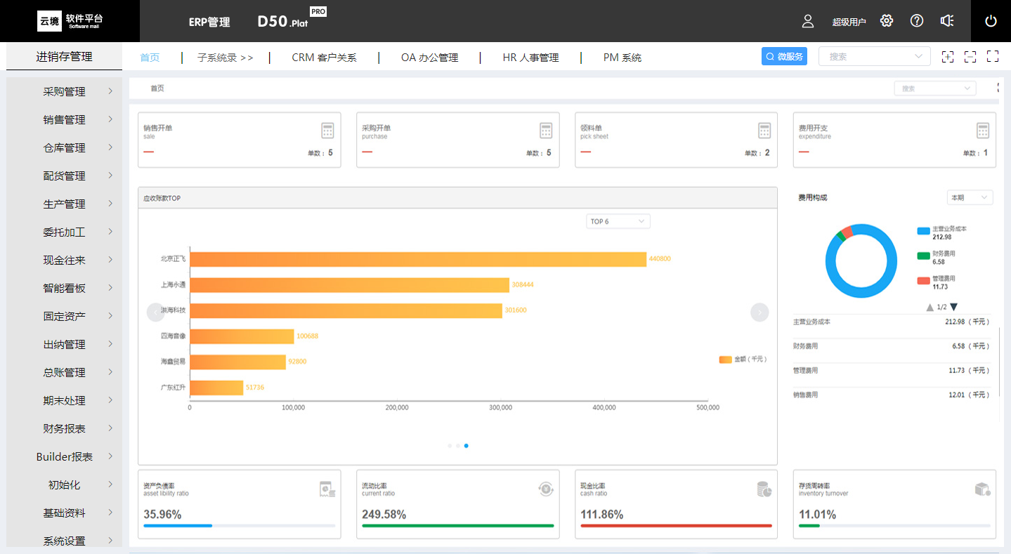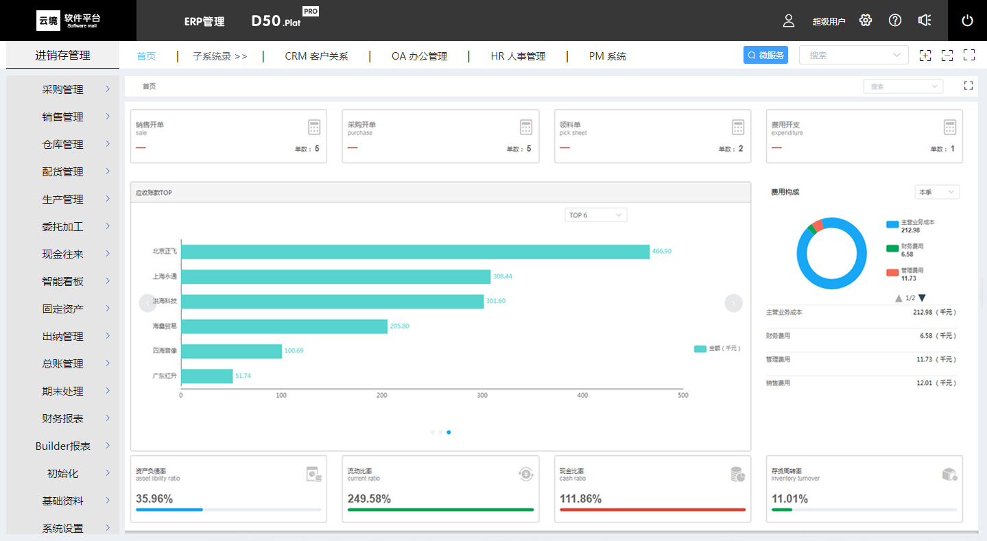云境-D50.Plat 一个完整的 ERP 管理系统。供应链管理、生产管理、现金往来、固定资产、工资管理、出纳管理、总账管理融为一体。软件平台支持多个子系统模块插件并行应用,实现子系统与主系统数据共享、数据穿透、业务关联。扩张了企业管理的应用,有着极好的易用性和实用性,全面提升了企业的管理能力。